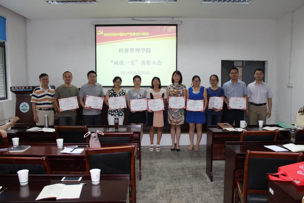 6165cc金沙总站检测中心举行纪念建党95周年“两优一先”表彰大会暨“两学一做”集体党课 6月30日下午,学院纪念建党95周年“两优一先”表彰大会暨“两学一做”集体党课在衣锦校区西108隆重举行。