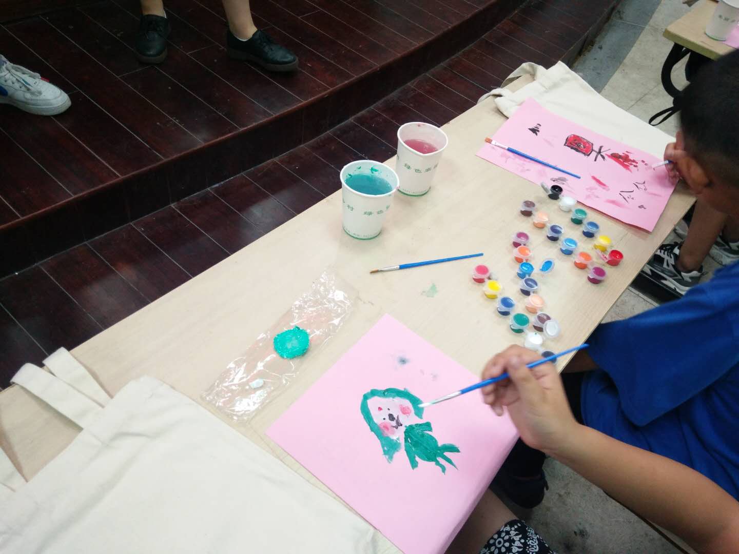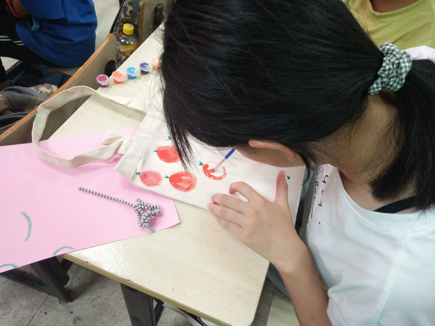 首先,实践团成员们根据年龄段将学生们分成不同的小组,采取一对二或一对三的模式,有针对性的进行暑假作业的辅导。在此过程中成员们发现学生的基础普遍偏弱,尤其是数学与英语,因此成员们将知识点结合生活,运用生活中显而易见的事物来帮助学习,力求通俗易懂。与之前相比,更多孩子遇到疑惑难题时,能更加自觉主动寻求老师的帮助。在学生们专心致志的学习和实践团成员们耐心细致的教导下,学生们纷纷表示有所收获,面对类似难题时可以达到举一反三的程度。在短暂的课间十分钟里,逐渐熟识的实践团成员和学生聊天嬉戏,关系融洽,并且组织举办了一些趣味小游戏,调动了学生们的积极性,活跃了课堂氛围。其次,实践团成员们组织举办了布袋子创意设计活动。此活动旨在帮助学生们缓解学业压力,提高动手能力,加强创新意识。学生们首先在粉红色草稿纸上画出初稿,再将自己的作品画在白色帆布袋上。在活动过程中,学生们充分发挥想象力,年级虽小但却画的十分生动形象,成员们不断鼓励称赞孩子们的创造力,给予他们最大的鼓励。在活动接近尾声时,学生们依旧忙活着手中的创意设计,脸上露出天真无邪的笑容,丝毫没有被时间和天气所影响,在玩中学,在学中玩。最后我团成员与手拿原创设计帆布袋的学生们进行了合影留念,结束了这充实且有意义的一天。