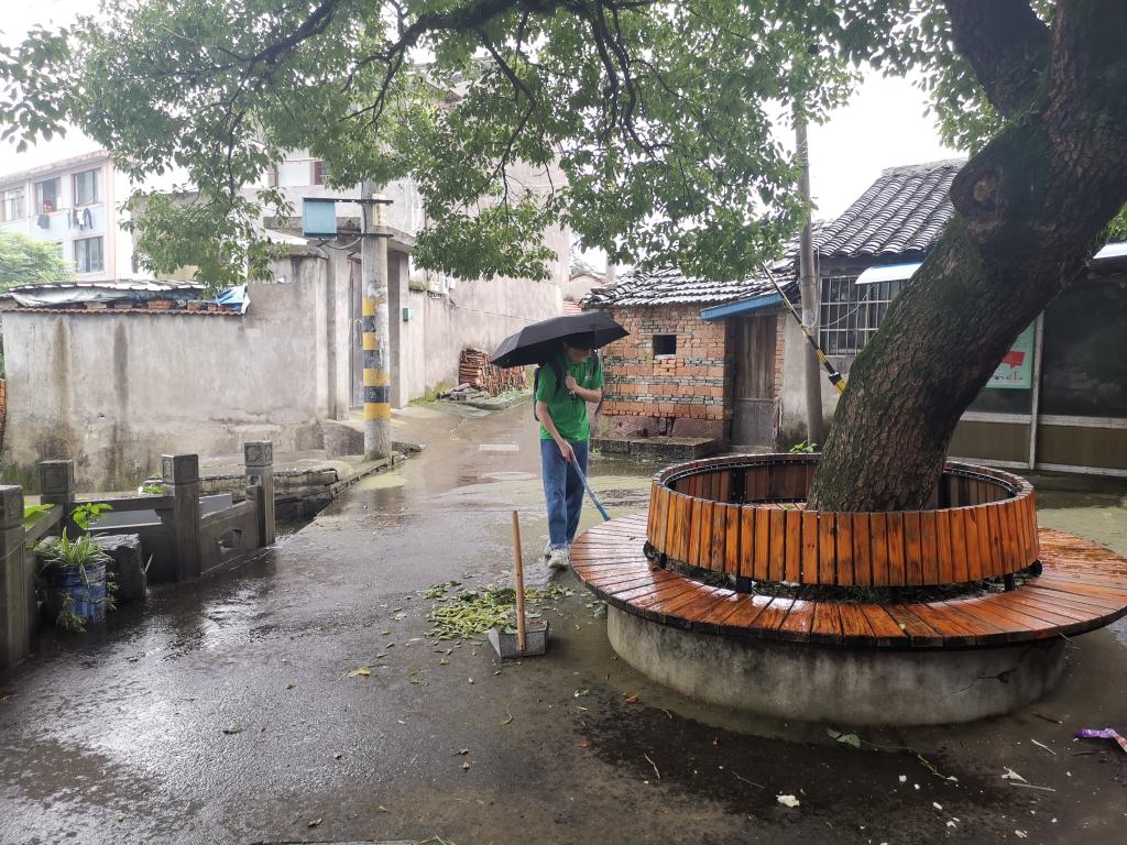 社会实践第二天,“七巧板”大学生暑期社会实践团决定帮助美化上凌村的环境。