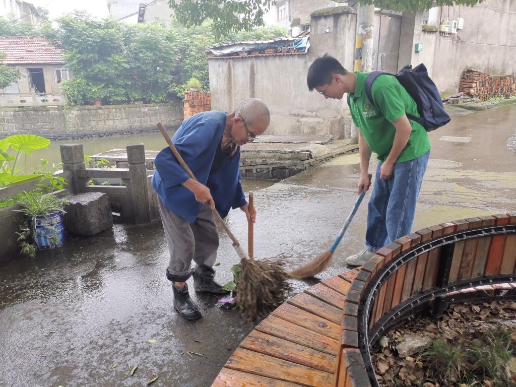据了解,每天上午九点半和下午一点半村里都会有专门人员来打扫路边的垃圾。经过短暂的休憩,下午一点半左右,实践团的成员们便抵达村口的卫生角等待清洁人员到来,帮忙一起打扫垃圾。负责打扫的是一位年迈的老人,他推着二轮小车缓缓从远处走来。每当看到某个地方有垃圾,老人便会放缓脚步,停好二轮小车,不紧不慢地从车里拿出一把扫帚和一个簸箕。老人说,自从村里有了卫生角、进行垃圾分类之后,路边的垃圾少了很多,每天清理的大多是落叶残枝。成员们跟着老人的脚步走遍村里各个角落,让残枝落叶和垃圾归回垃圾箱,还道路一份清洁,过程中村里的部分老人主动地把家里的扫帚、簸箕借实践团的成员们,并一起打扫周边的卫生。就这样,实践团的成员们结束了这充实且有意义的一天。