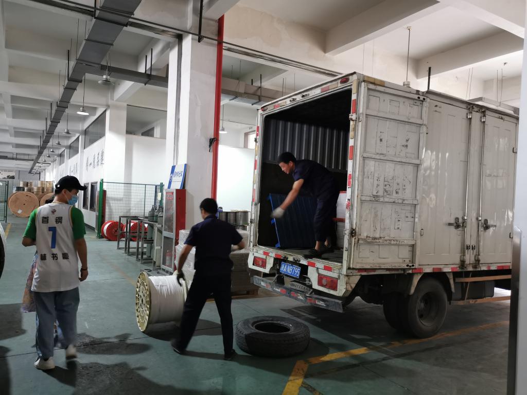 在车间,团队成员们正一一迿问着工人们有关现阶段企业复工复产的情况。在询问时,电缆的生产加工工作一直在有序地进行着,更让人确切的感受到因疫情而被迫无法复工已是很久之前的事情。尽管如此,在车间的工作人员们仍然时刻注意着防尘防菌防病毒的工作在结束了询问后,团队成员们又来到了工厂车间的管理办公室,在办公室中,从事会计工作的员工都在紧张忙碌着,虽然如今已是月底,工作量很大,但他们还是愿意在百忙之中接受实践团队的问卷调査。接着,团队去到了物流办公室,比起管理办公室,这里的工作人员更为空闲一些,于是在问卷调查结束后,成员询问了他们关于在疫情下,公司货物在物流方面受到的影响,以及除了对工厂内部运输的影响外,在将电缆运送到客户收货地点时的工作又是否会因此而延误。