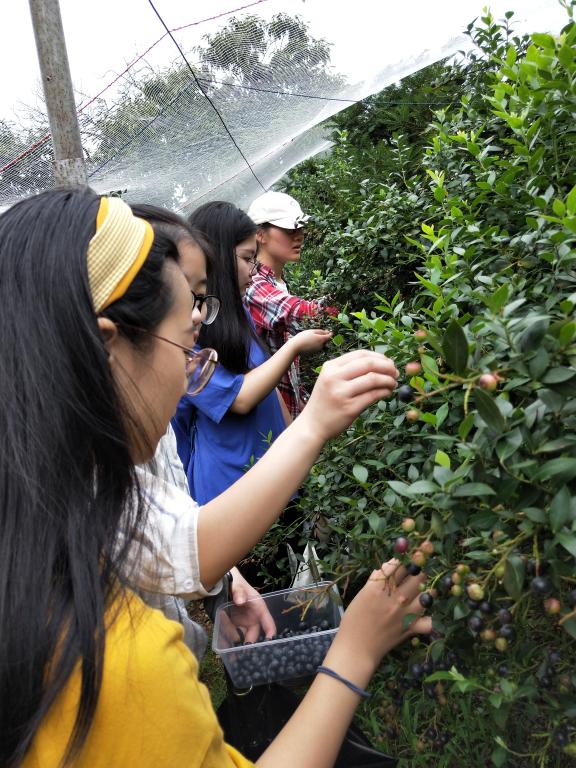 下午,对员们来到了田间乐蓝莓基地的分部,正处于蓝莓丰收季节,基地上许多工人都在忙着采摘。通过访问负责人,可以了解到临安目前蓝莓的售卖方式还是以直接售卖和游客上门采摘为主,还会做蓝莓干和蓝莓酒,提高产品附加值。但是目前也有一些假冒信息存在,一些商家销售假冒蓝莓干导致果农损失。