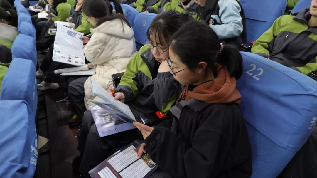 在安排了一个月后,高校宣讲会在报告厅顺利进行。精致与生动的宣传片让学弟学妹们体会到了浙农林的美丽与魅力。为了在众多高校的宣讲中脱颖而出,一中小分队精心制作了充分凸显浙农林优势的PPT,从学弟学妹们最关心的三位一体与转专业话题入手,进行全方位的讲解,现场气氛高昂。最后,一中小分队为同学们分发了浙江农林大学招生宣传册和特色书签,以作纪念。宣讲结束后,成员们还不忘为学弟学妹们解答了他们对学校、专业的疑惑。