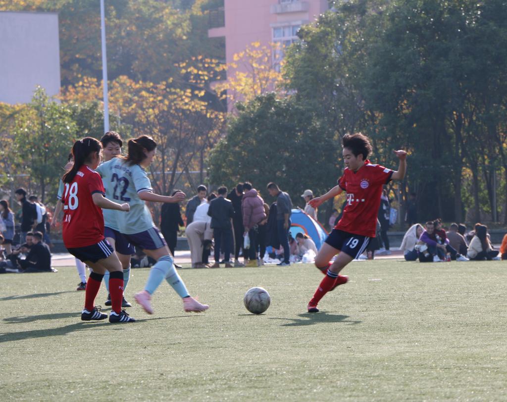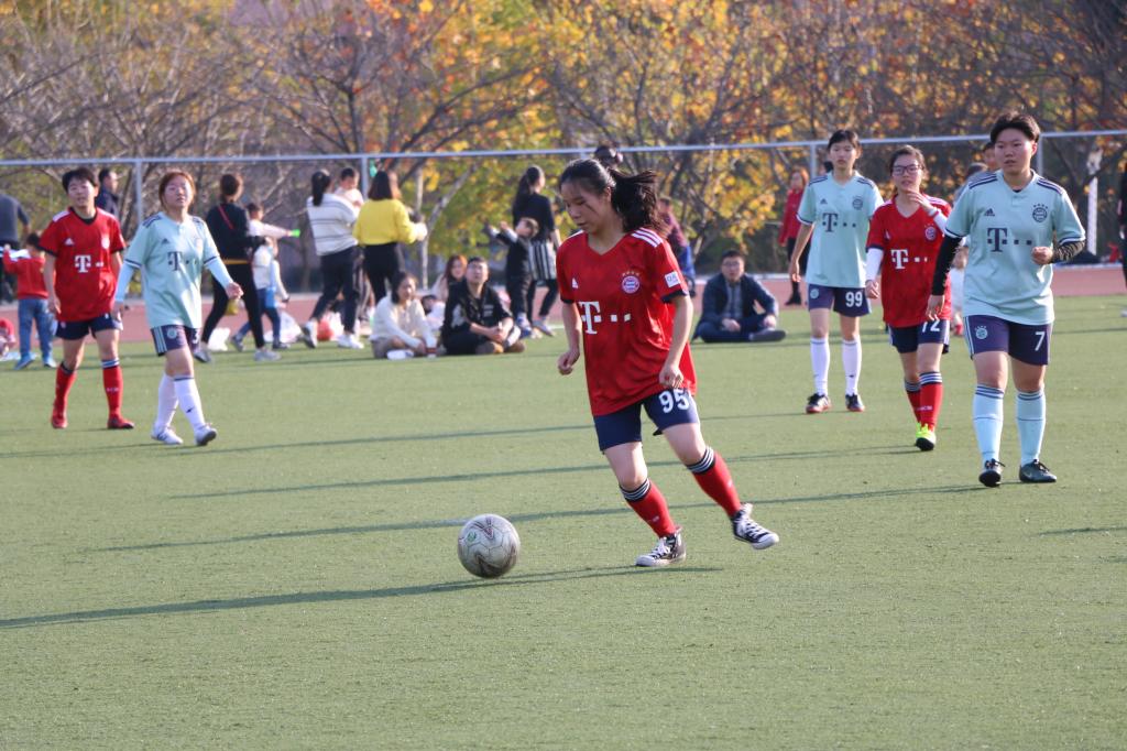 25日下午,联队与国际教育学院展开了一场激烈的比拼。上半场,国教学院进攻猛烈,联队努力防守,但是因为状态不佳,导致以0:1的比分落后。下半场,联队克服困难,配合默契,凭借9号郑巧儿精彩的射门拿下一分,最终两队打成平手。