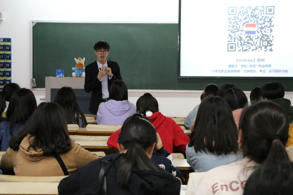 首先,来自高顿财经的丁老师以问答的形式解读了简历的重要性。接着,丁老师主要从“HR主要喜欢看什么简历”,“如何给简历做造型”,“商科生能力三要素”三个方面详解制作简历的步骤和关键点。期间,丁老师展示了多幅简历图并对其进行评论和解说,幽默的话语巧妙地活跃了现场氛围。最后,老师对同学们提出的疑问作出详细而耐心的解答。