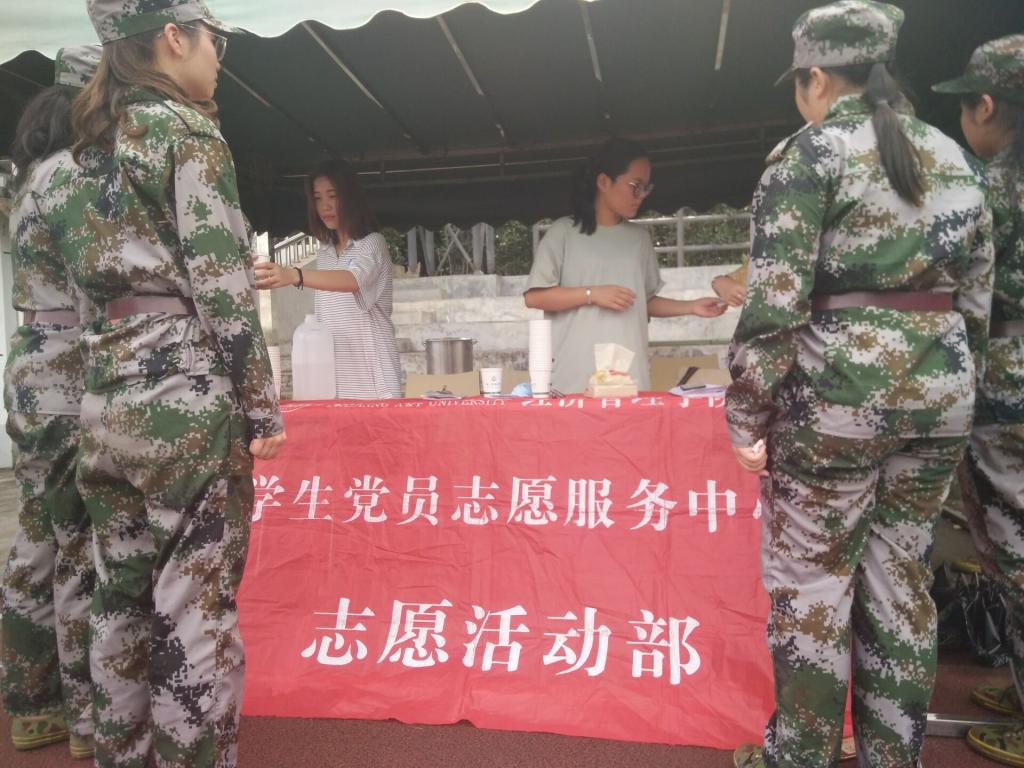 军训期间,6165cc金沙总站检测中心学生党员志愿服务中心在衣锦操场设立了军训的志愿活动部。志愿活动部由辅导员老师和学生会主席带领,主要为军训过程中不舒服的学生提供帮助。
