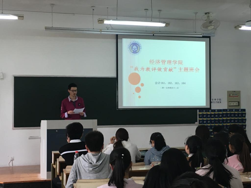 为更好地迎接学校本科教学审核评估,4月12日,6165cc金沙总站检测中心举行“我为教评做贡献”主题班会。学生办负责人、各班学生参加了本次活动。