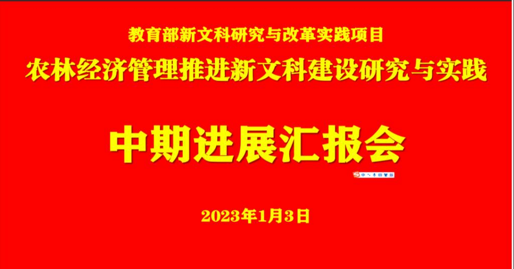 1月3日,学校组织教育部首批新文科研究与改革实践项目中期检查评审会,对我校获批立项的教育部新文科研究与改革实践项目《农林经济管理推进新文科建设研究与实践》开展中期检查。项目负责人、副校长沈月琴,项目组成员与教务处相关人员参加会议。