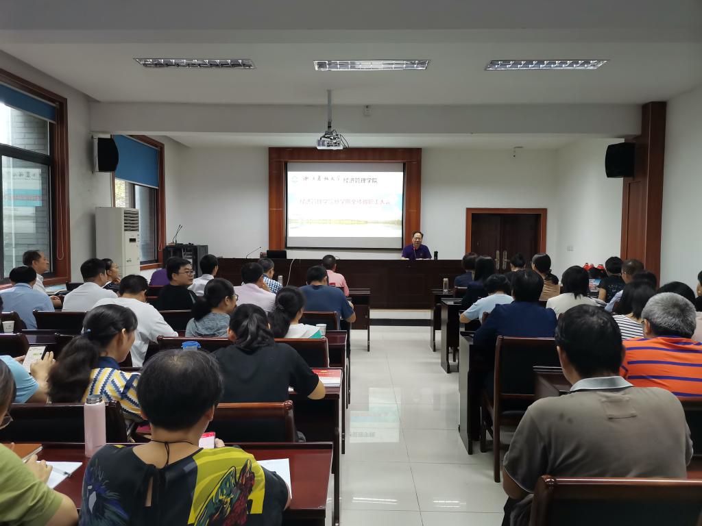 学院党委书记仲晓婷全面传达了学校暑期中层干部(扩大)务虚会会议精神,从传承与发展、形势与使命、定位与目标、思路与举措四个方面详细阐述了学校建设区域特色鲜明的生态性研究型大学的战略目标和发展规划,她要求全院教师进一步解放思想、凝聚共识,抓住机遇与挑战,不断推进学院各项事业的发展。王成军副院长通报了研究生教育、学科与学位点建设和科学研究等工作的进展情况并对接来下的工作进行了布置。陈劲松副院长总结了教学方面的工作情况,强调了下半年需要重点推进的几项工作。周凯副书记对本年度招生就业和党建思政工作进行了通报。院长助理尹国俊对智库工作进行了介绍和动员。